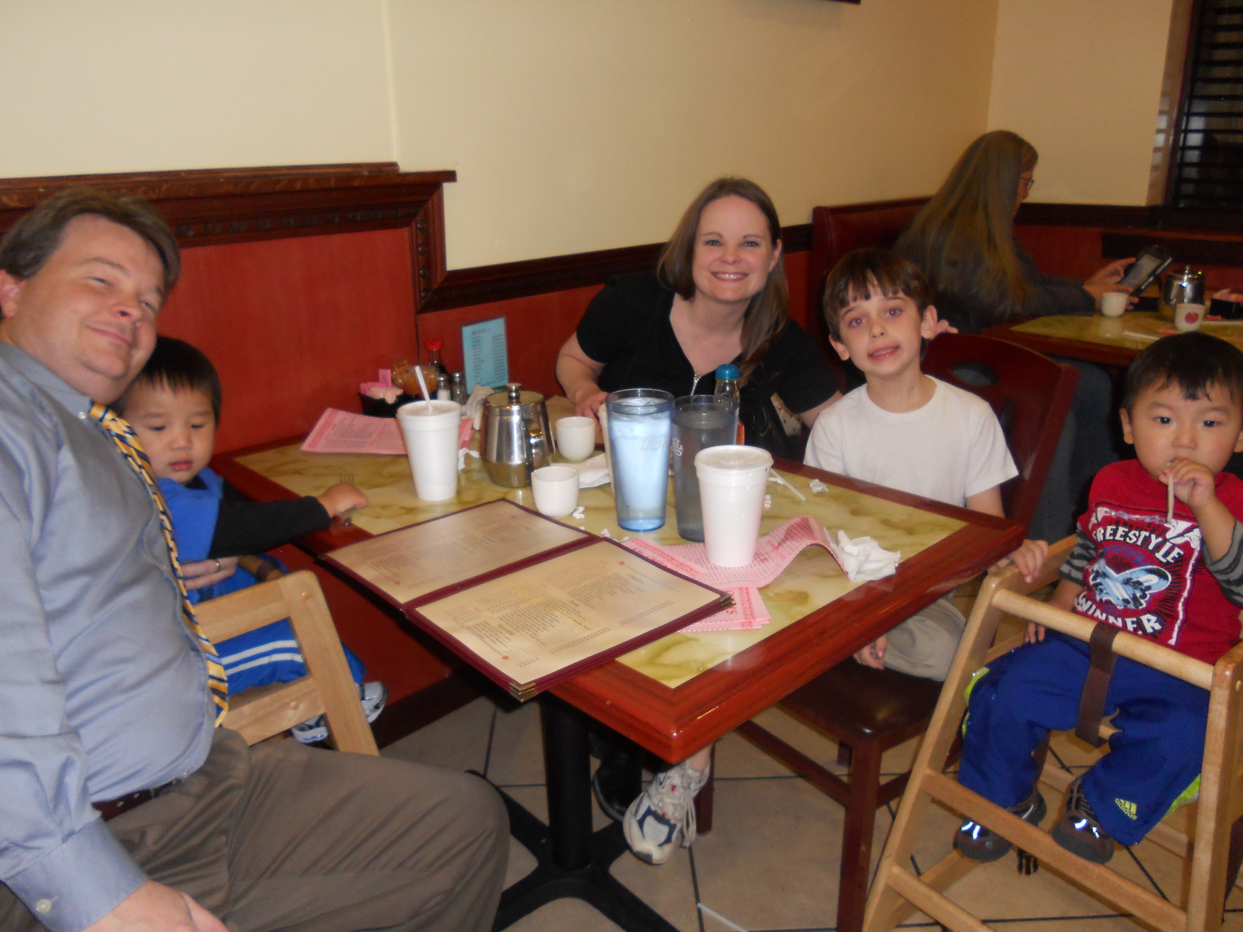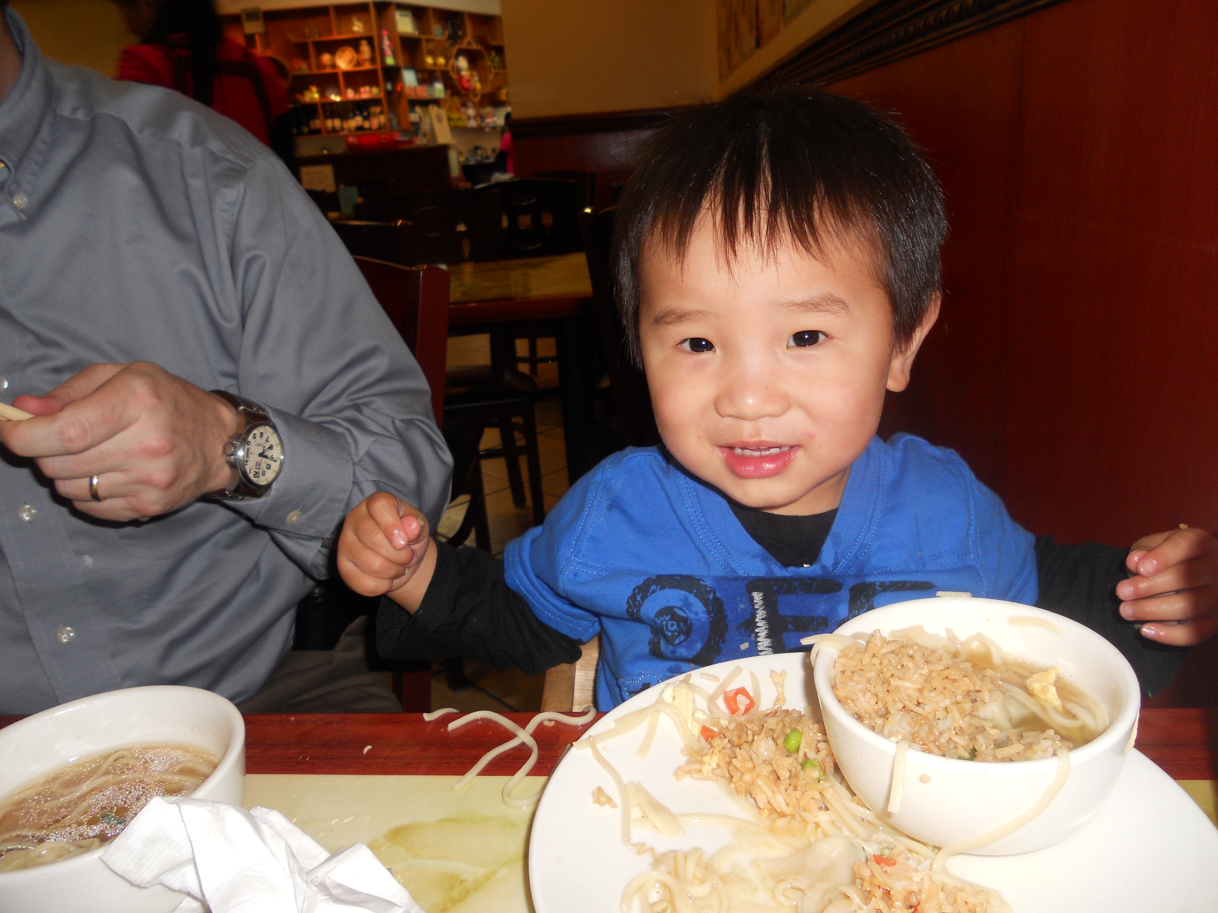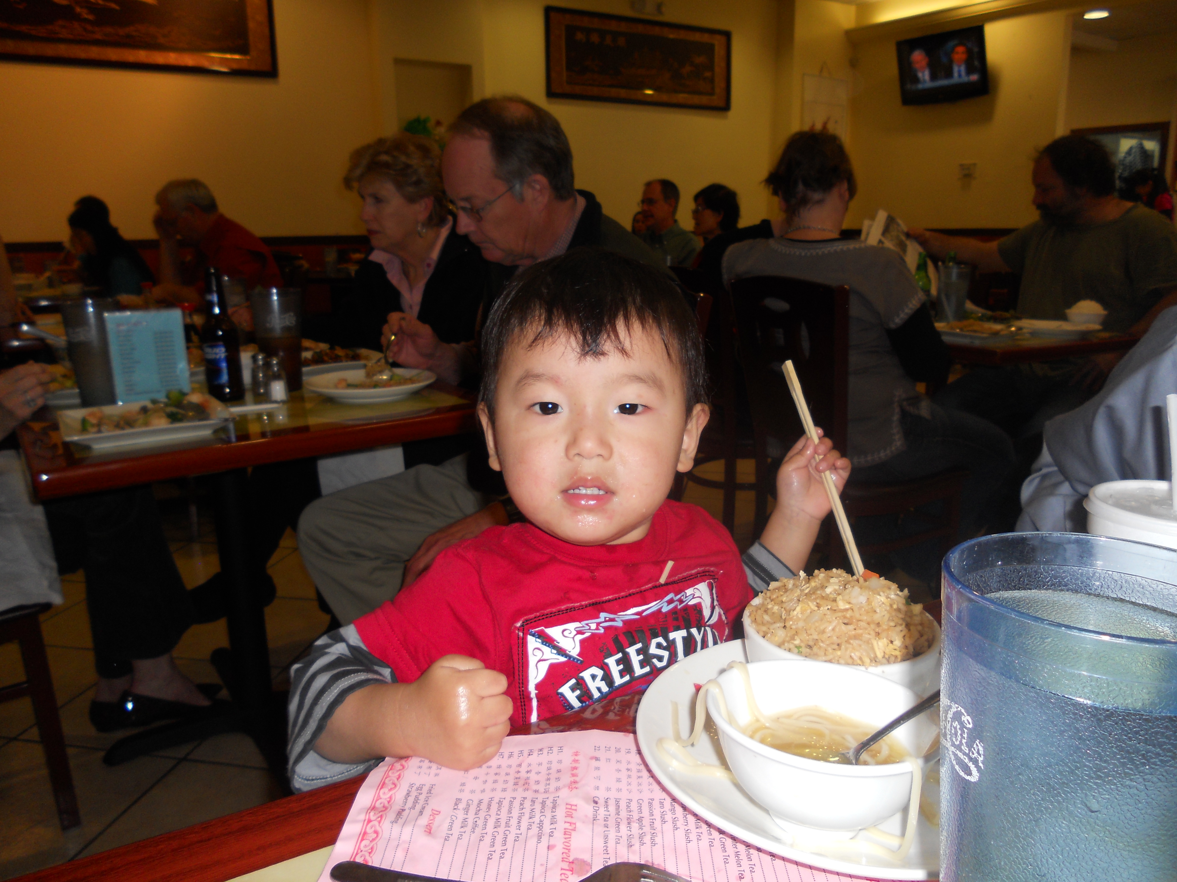 The above pictures were taken on Chinese New Year at Mr. Chen’s. It was our first visit to Mr. Chen’s since returning from China. The boys were in love. If Fu Fu could have crawled into the noodle bowl he would have. Zan and Ge Ge were all about some Egg Drop Soup. Now that we have had “real” Chinese food (in China), I will have to say that Mr. Chen’s is pretty authentic. I have always thought Mr. Chen’s smelled different than other Chinese restaurants. Now I know what the smell is. China.
